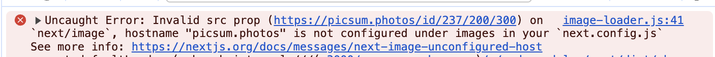 간단하게 next.config.js 에서 에러에 표시된 hostname을 추가해주면 된다.